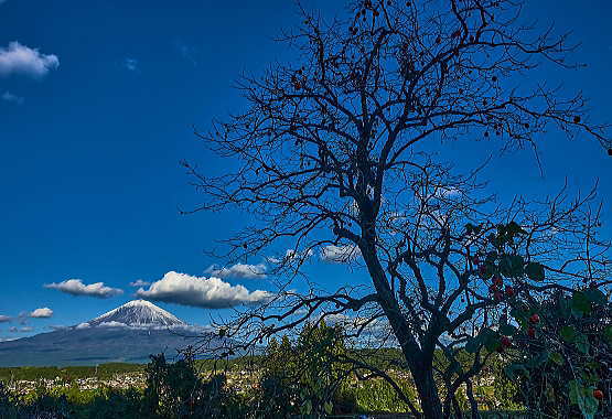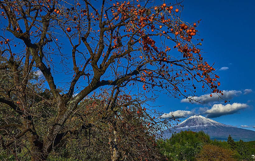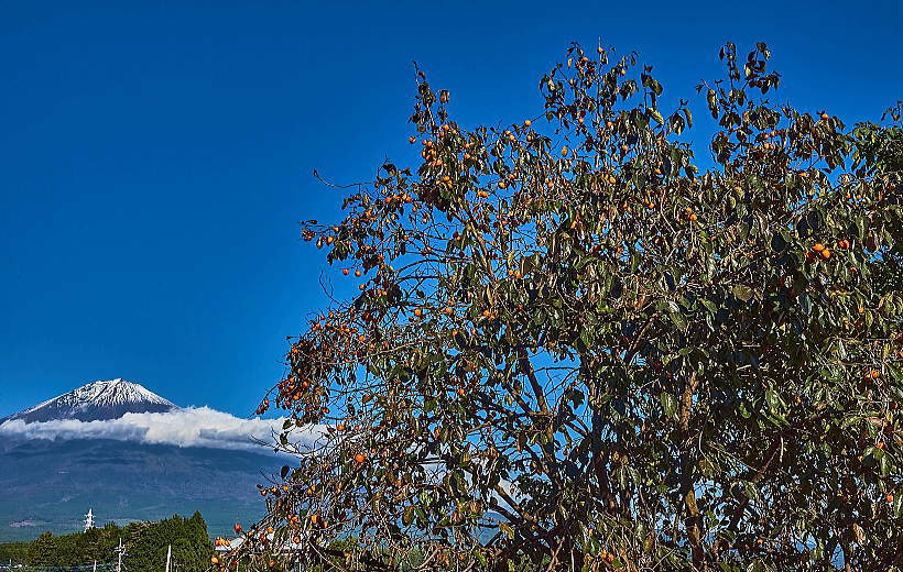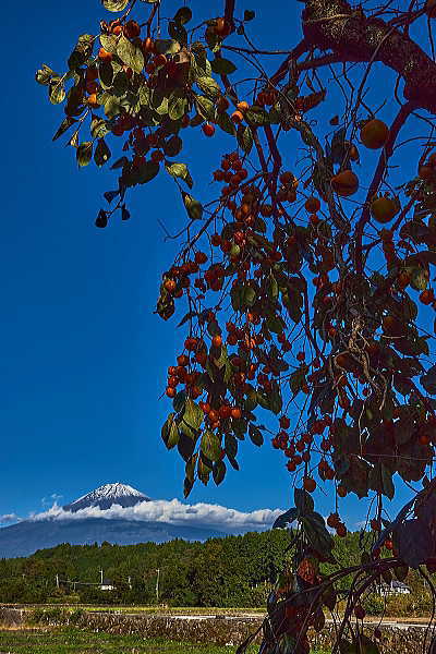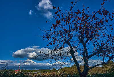 「紅富士」と「柿の実」絵になりますね。