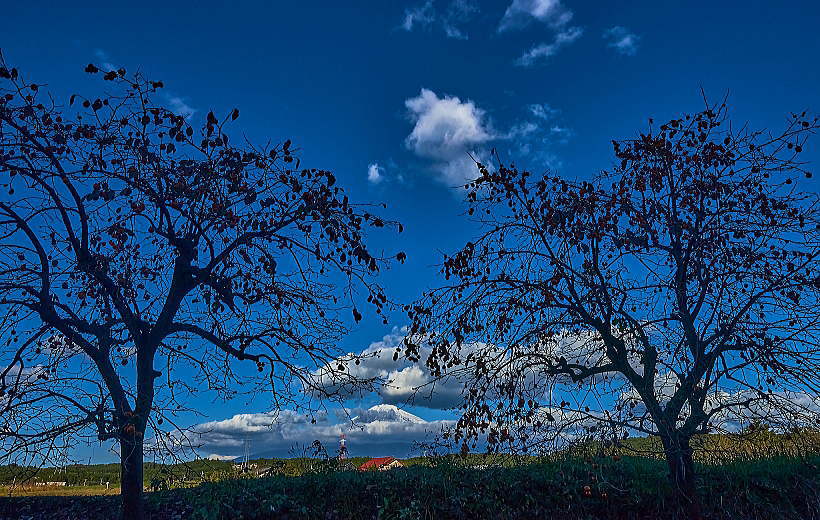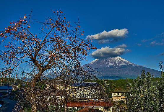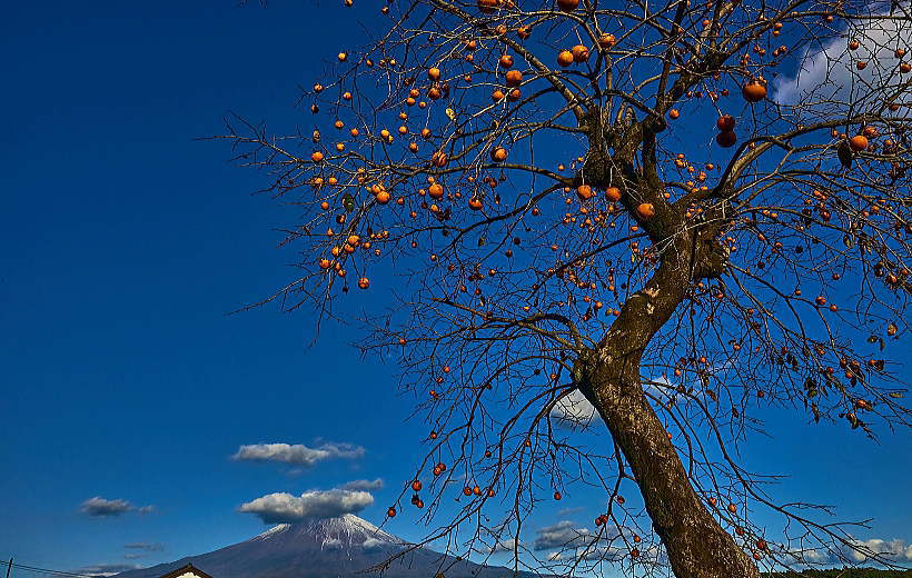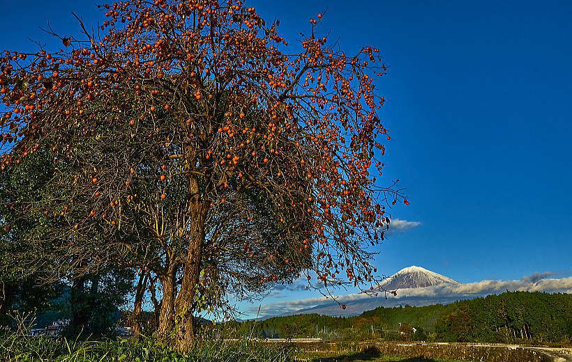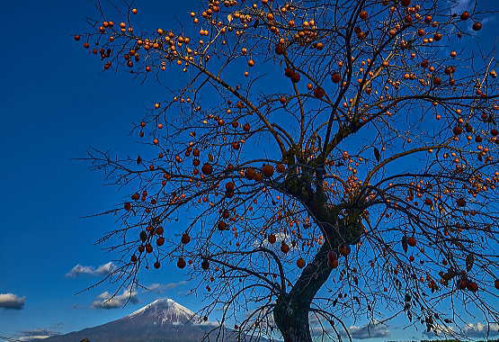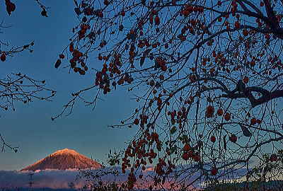 夕暮れの「富士山」と「柿の実」最高です。