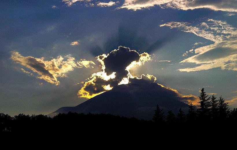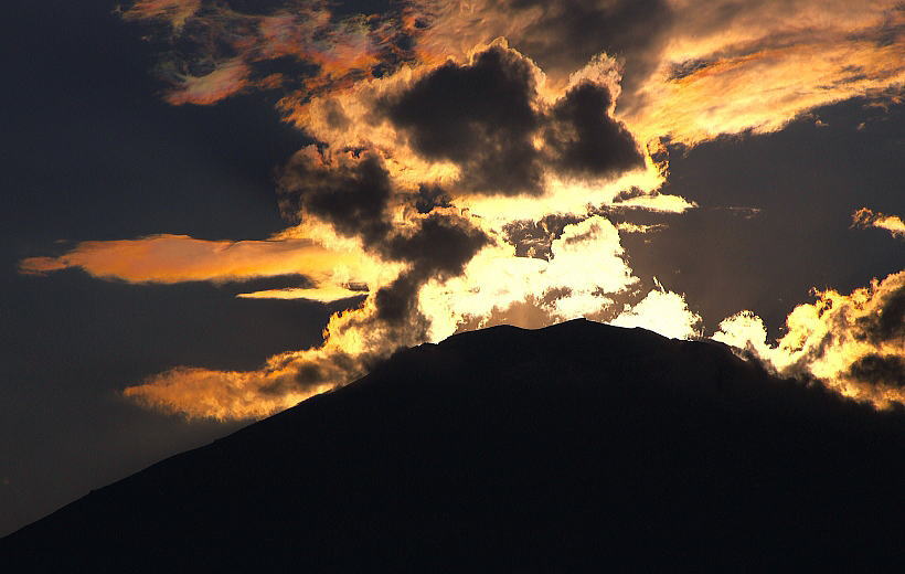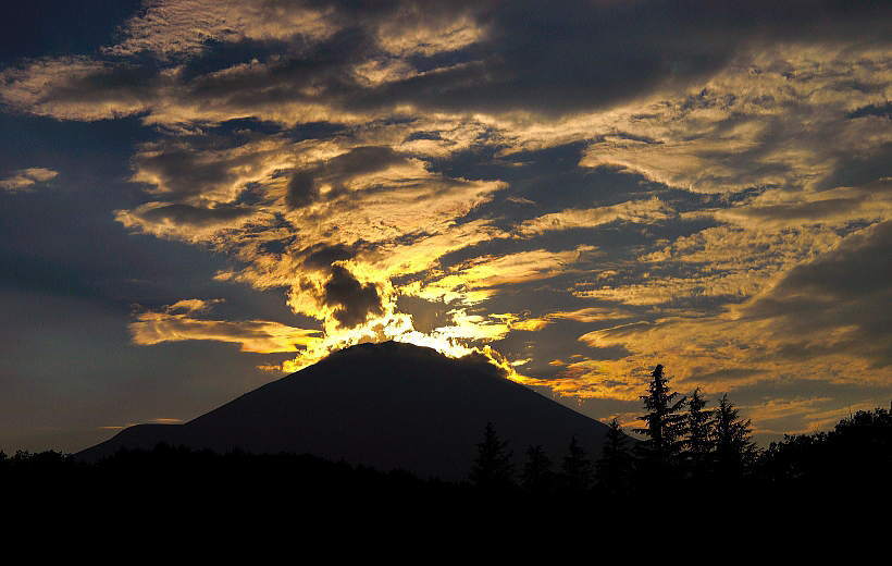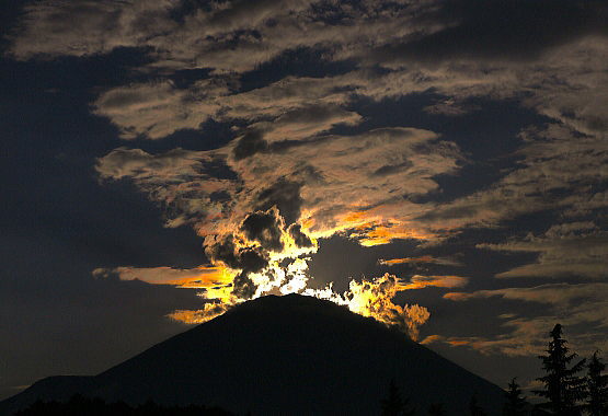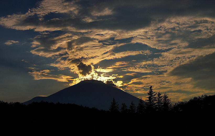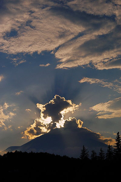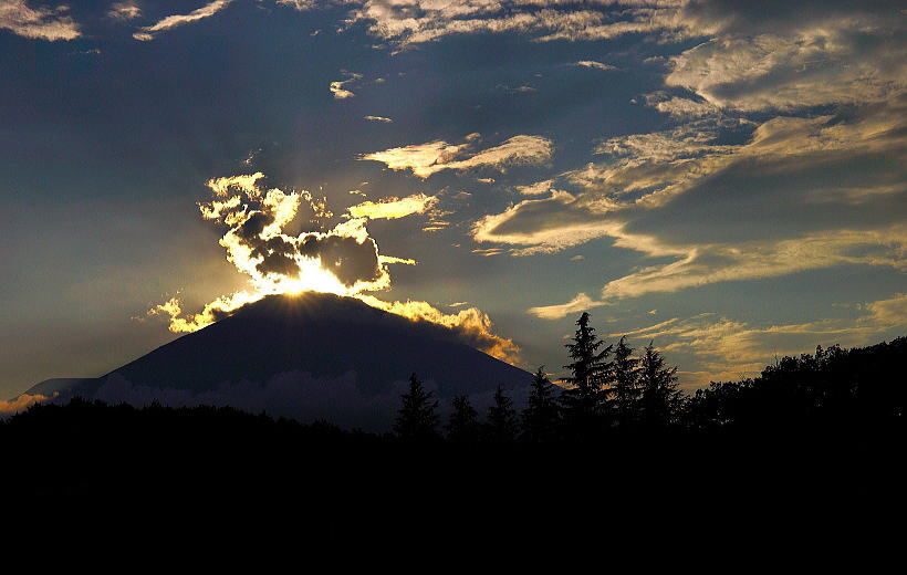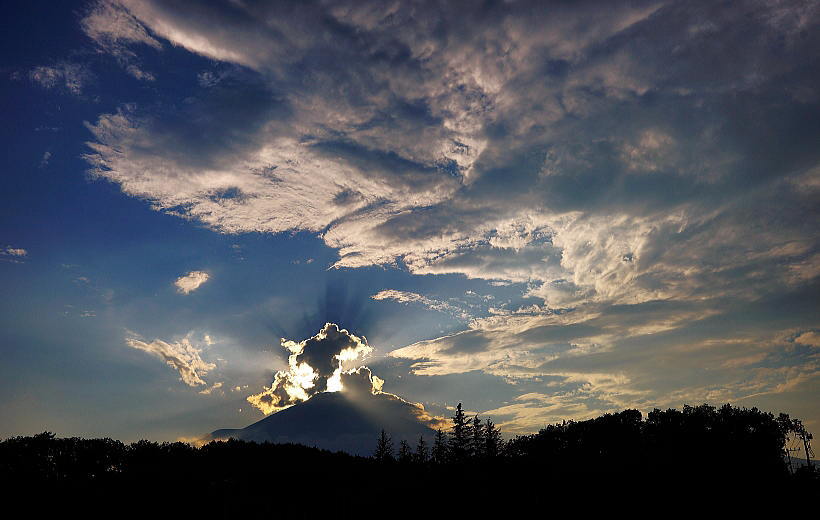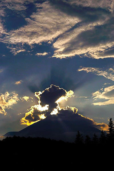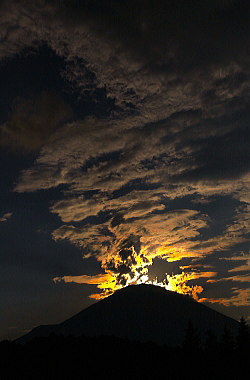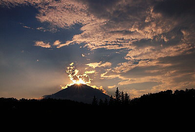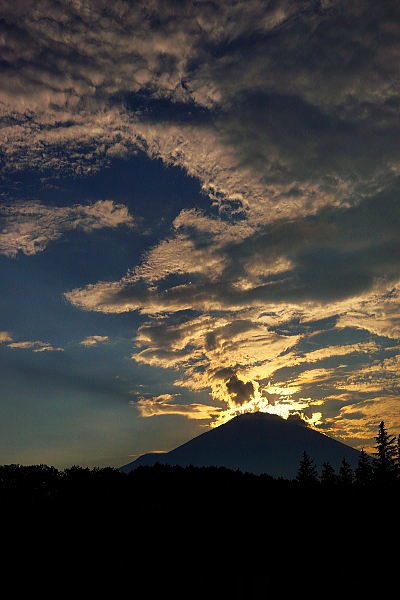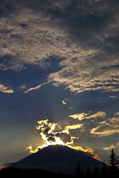 光芒も出てダイヤモンド富士の形になってきました。