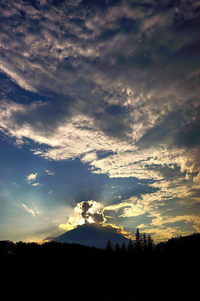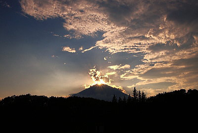 雲多いながらダイヤモンド富士の完成です。