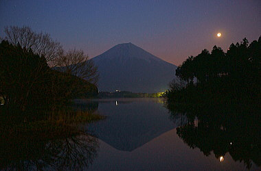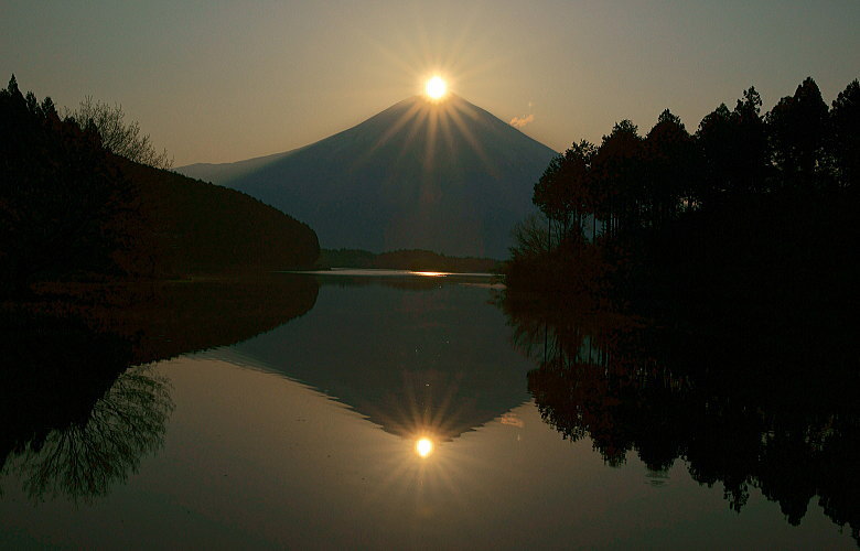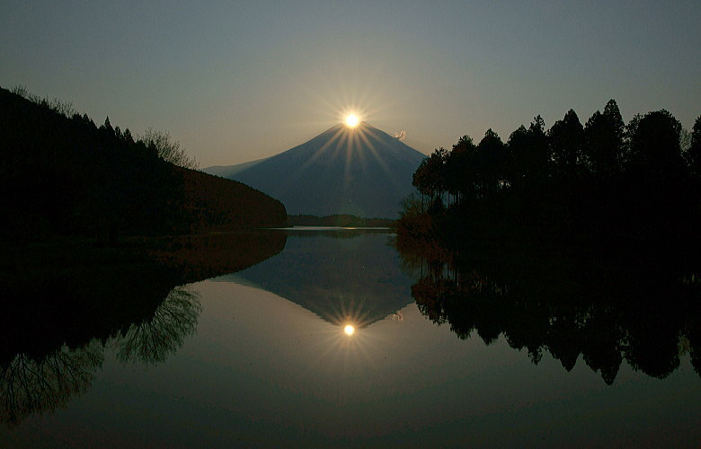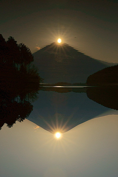 すこしばかりですが逆さが映っています。準ダブルダイヤモンド富士で〜す。