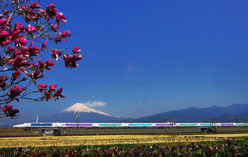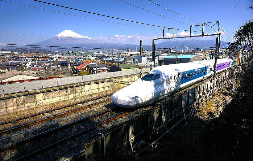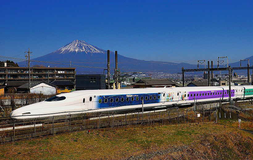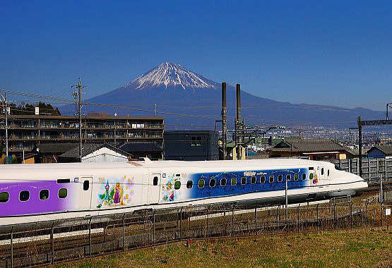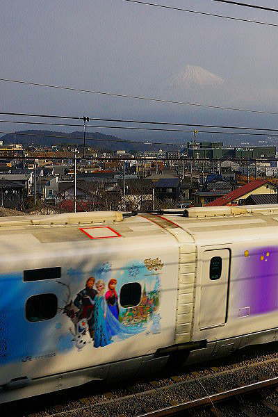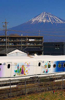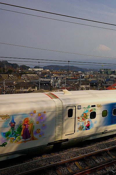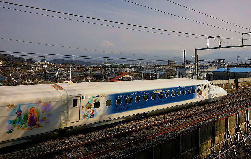 ファンタジースプリングスの世界観を表現した特別塗装の東海道新幹線です。