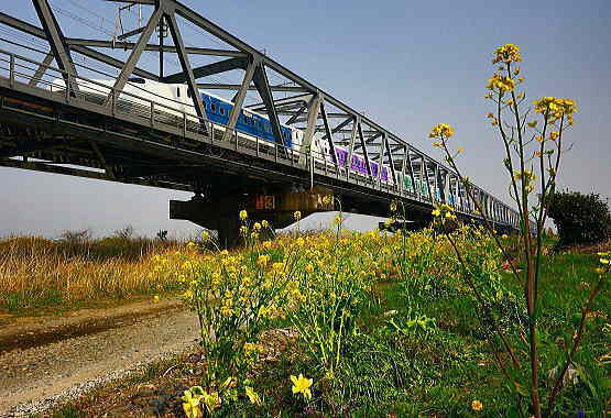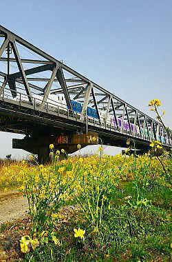 最後尾です。 鉄橋で撮ってみました。富士山は雲隠れ。
