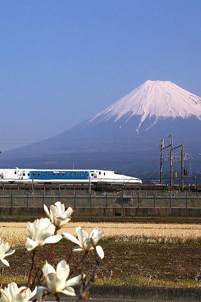鉄橋で全景を入れてみました。富士山は雲多しです。