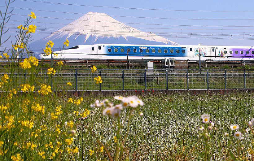 ファンタジースプリングスの世界観を表現した特別塗装の東海道新幹線です。
