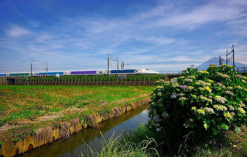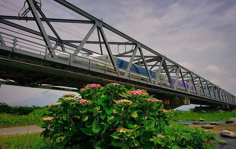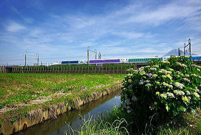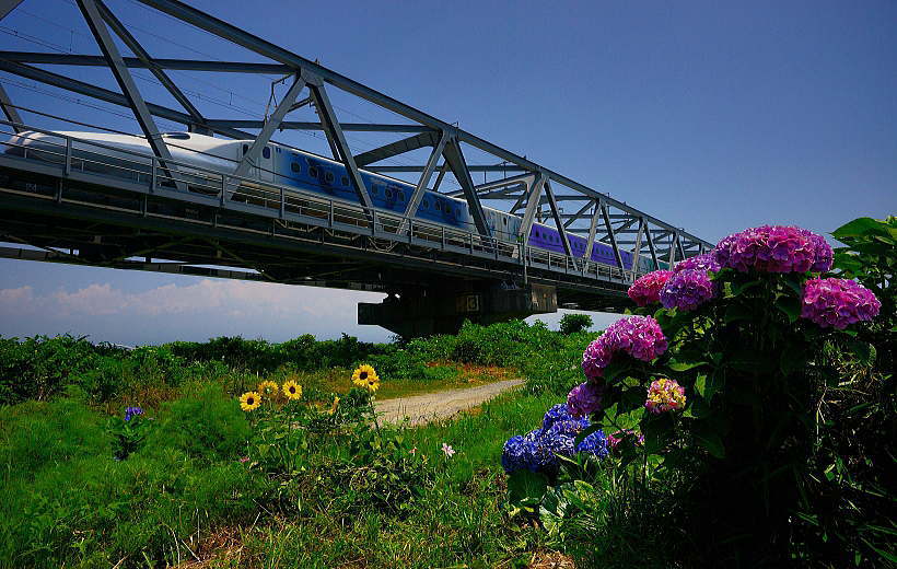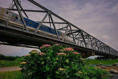 最後尾です。 鉄橋と「紫陽花」です。