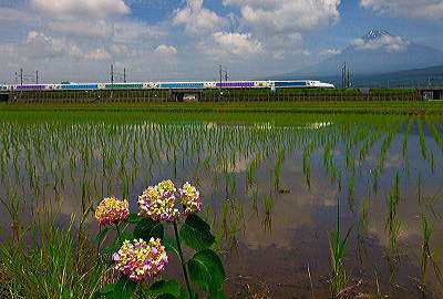 田んぼと「紫陽花」です。