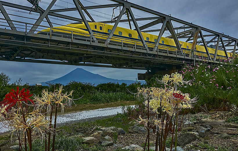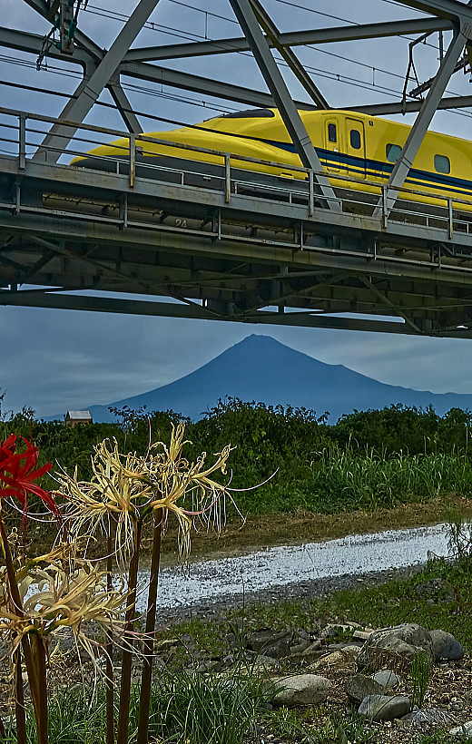 やっと出た富士山をバチリ。「紅いヒガンバナ」と「白いヒガンバナ」ですよ。♪♪ グー ♪♪