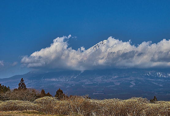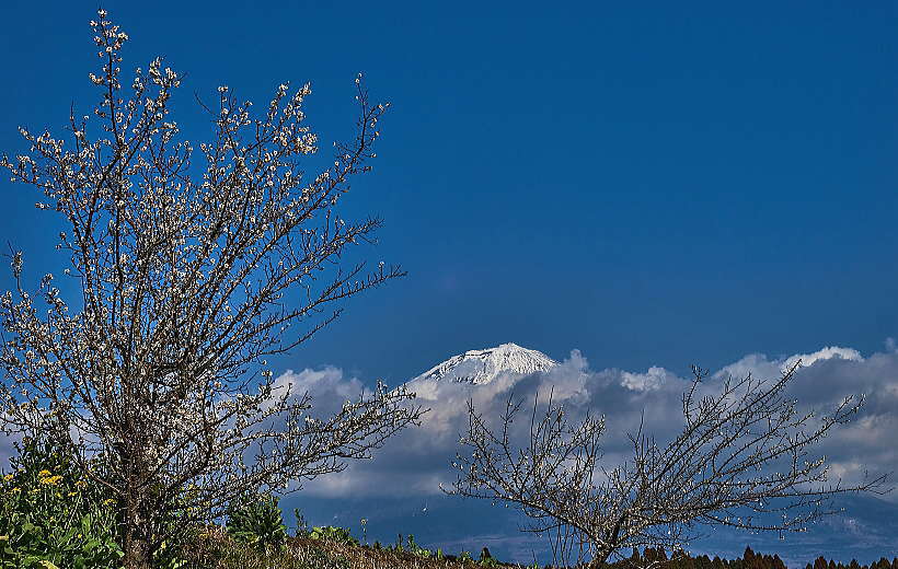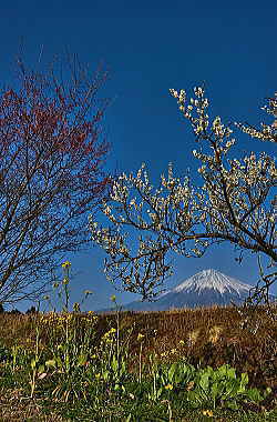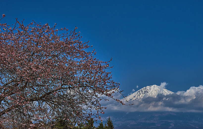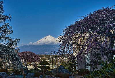 花の間に富士山をちょっとだけ覗いてみました。