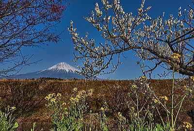 花の間に富士山をちょっとだけ覗いてみました。