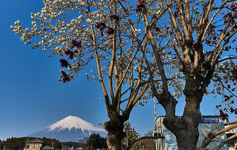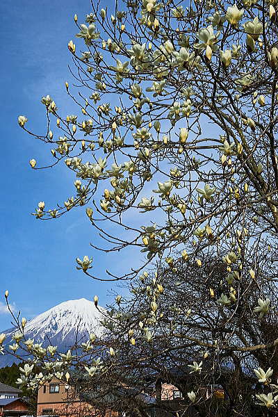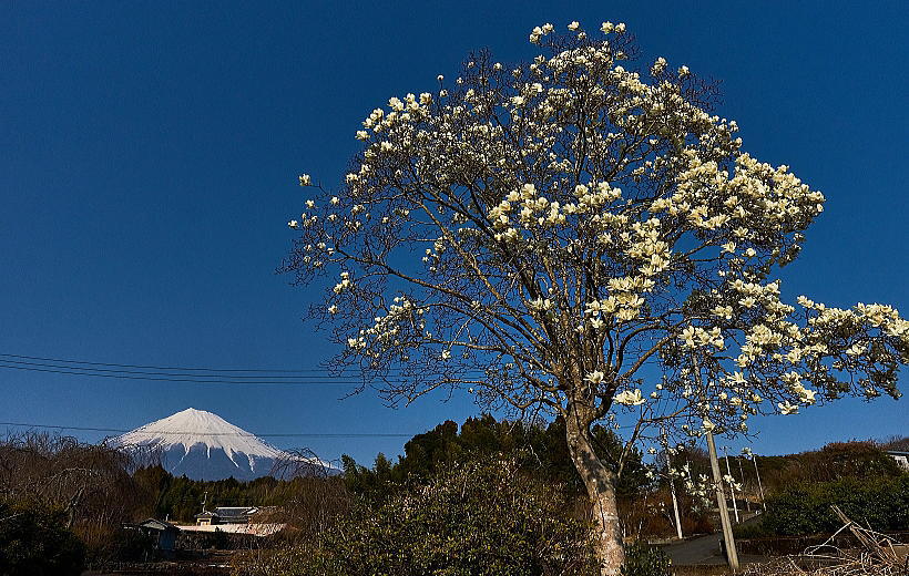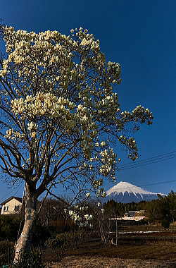 田んぼに水が入って逆さ富士がキレイに映りました。 「ハクモクレン」です。