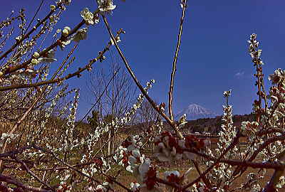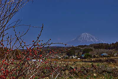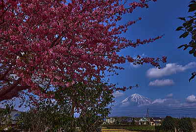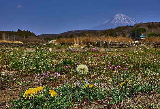 「リュウキンカ」と富士山も絵になりますね.。紫の「ホトケノザ」もアクセントになります。