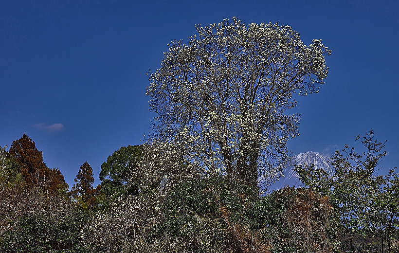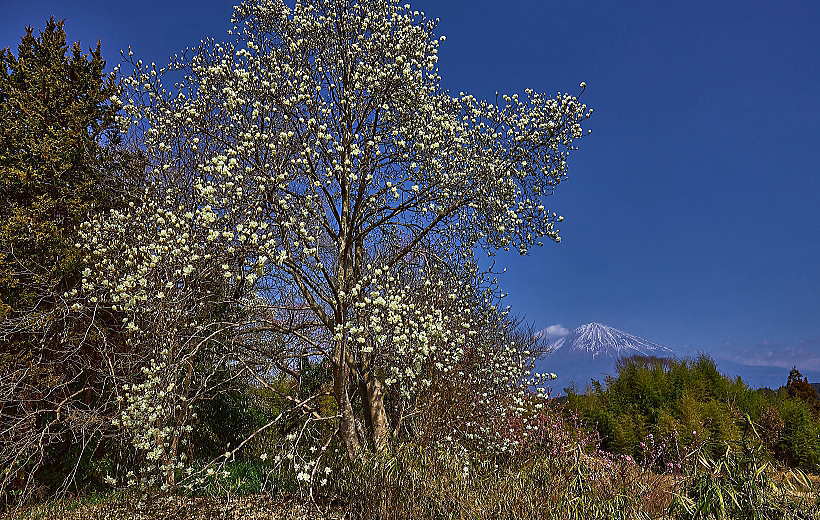 「白梅」と「ハクモクレン」に富士山とは贅沢です。
