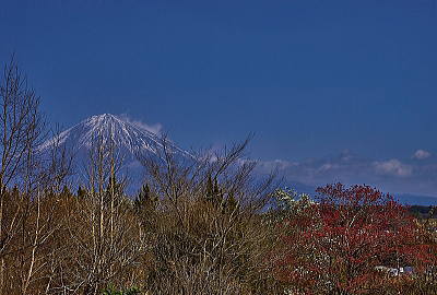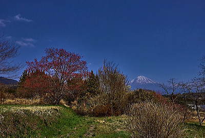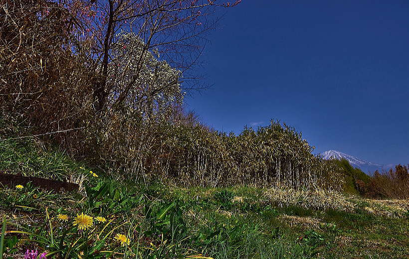 里山の春景色って感じでしょう。曲がった小道の先には富士山なり。