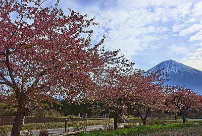 「河津桜」でしょう。平地と違って標高が高いので3月末になって満開です。