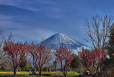 富士山を真ん中に入れるとこんな感じです。春ですねー。