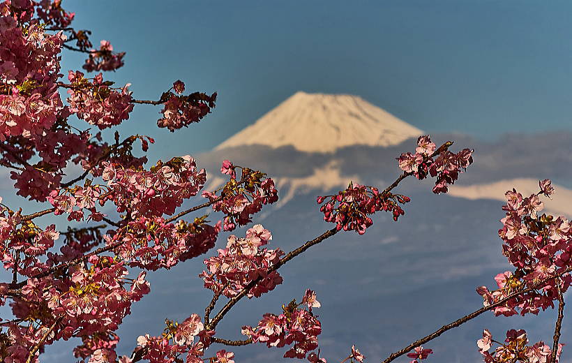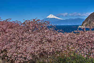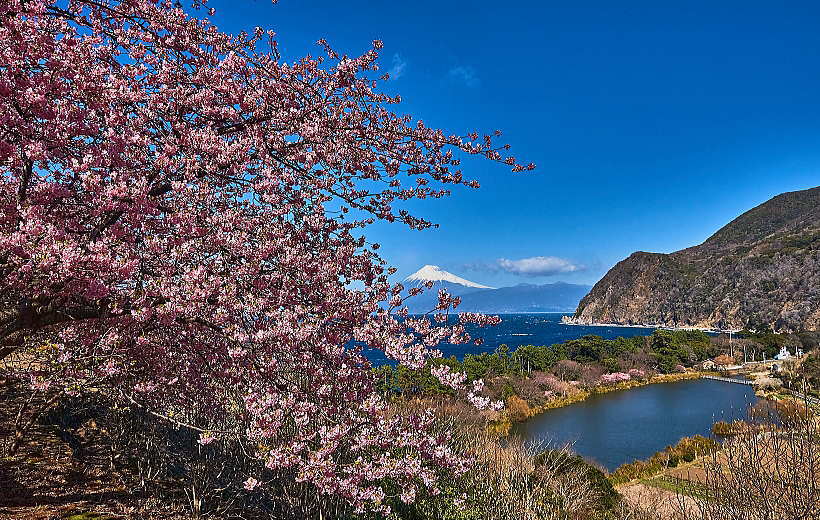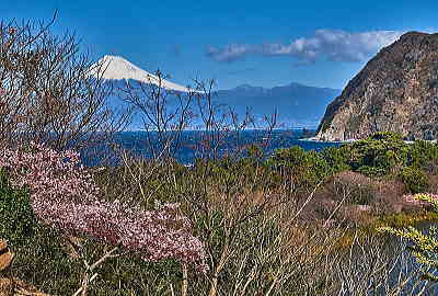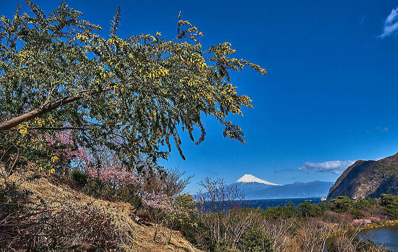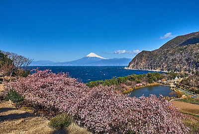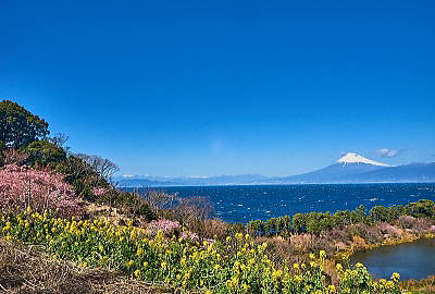花と池に海・富士山と青い空・・・これ以上の贅沢は無いですょ。