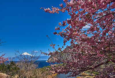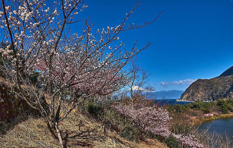 海岸直近の木で満開です。 中腹の「梅の花」です。