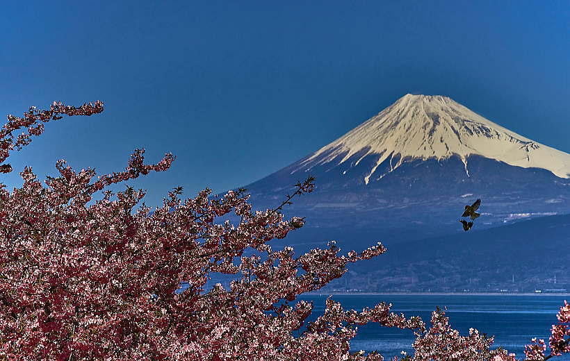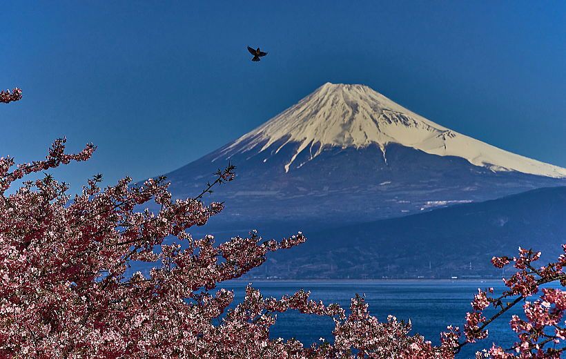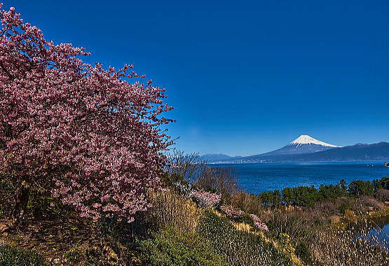 雲がまったくありません。真っ青な青空に白い富士山は気持が良いです。