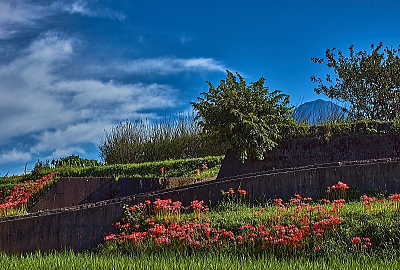 少し雲が多めですが青空に紅い花が良く映えます。