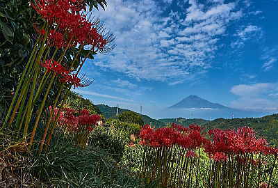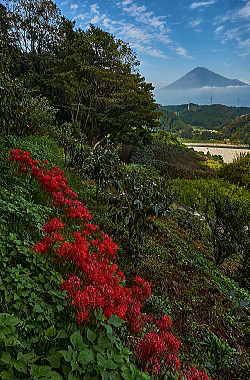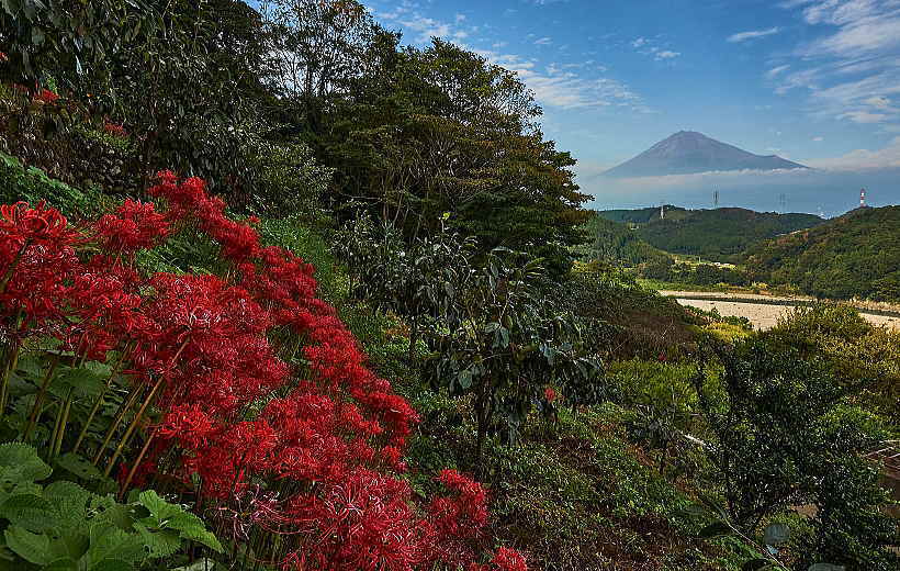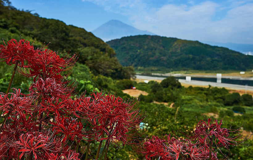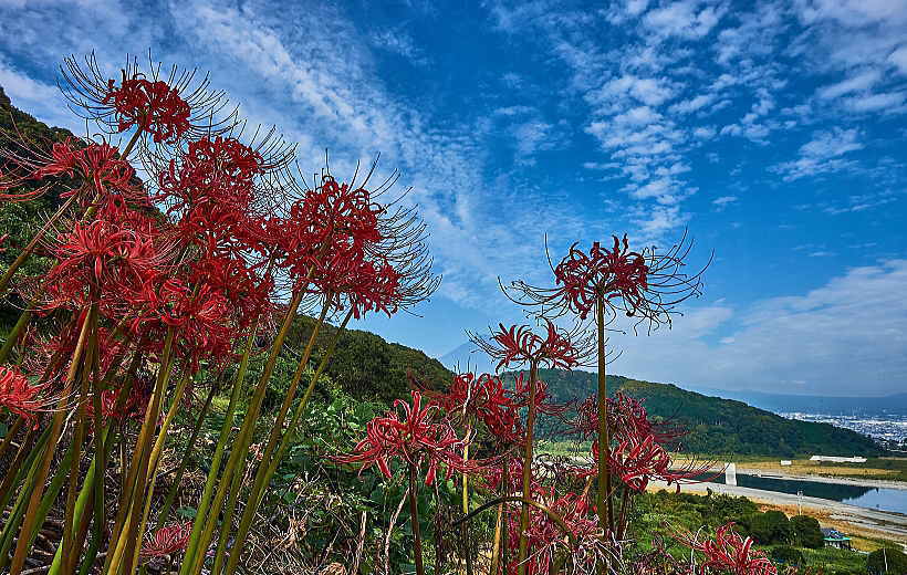 でも、この時期はやっぱりこの花ですね。右向こうに見えるのは富士川です。