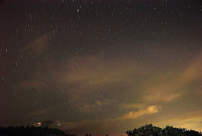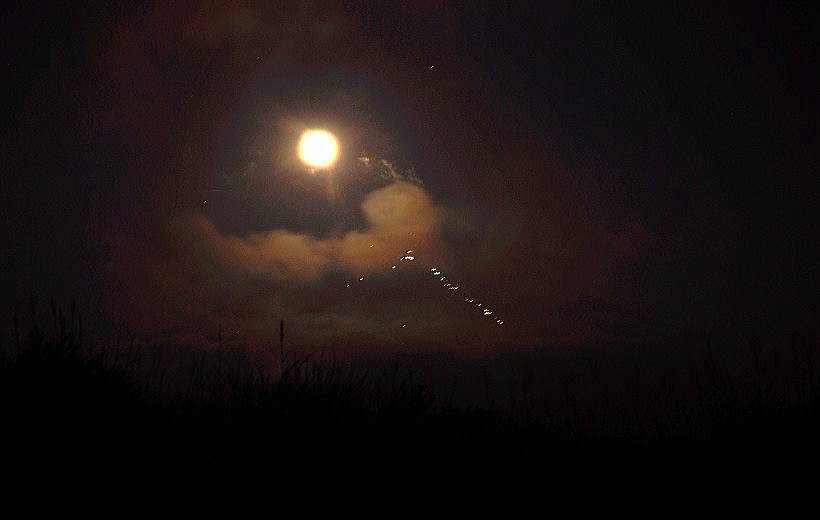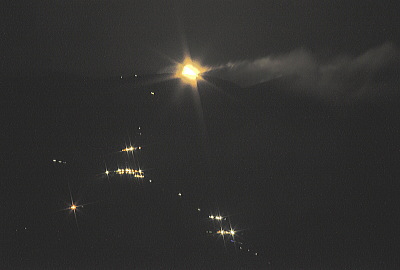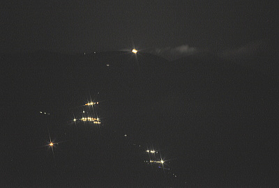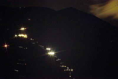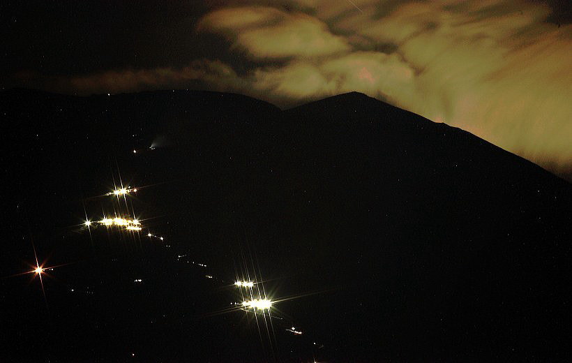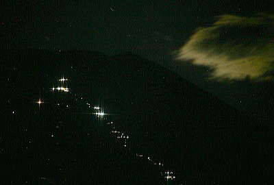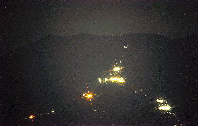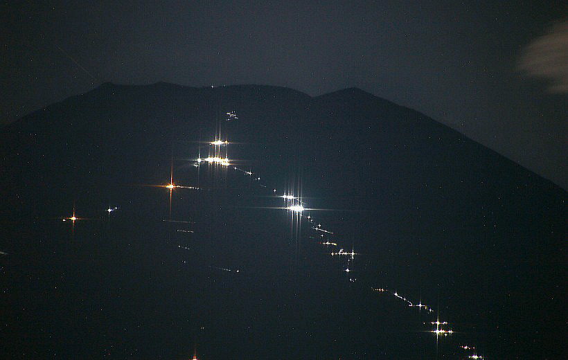 小さく線上に輝くのが登山者の明かりです。500mm100Sです。