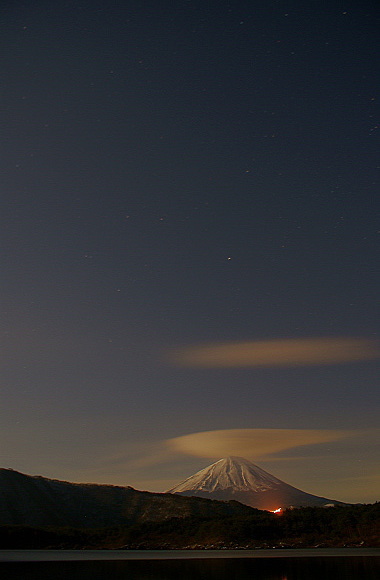 高度と位置から北側での撮影に決めた。早めの現着だったが笠雲の出現。