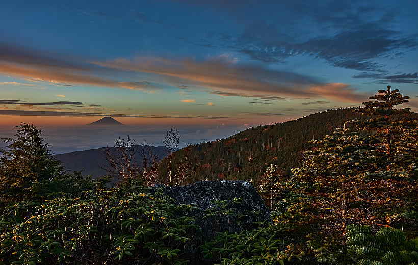 10月 標高2592mからの夜明けです。<<高山の朝>>