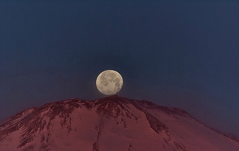 11月 西側から三日月おっ月さんを富士山山頂の剣ヶ峰に乗せました。<<イヤリングC>>