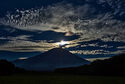 1月 ダイヤモンド富士を撮りに行って雲に乗っ取られました。こんなになっちゃいました。<<笠と太陽>>