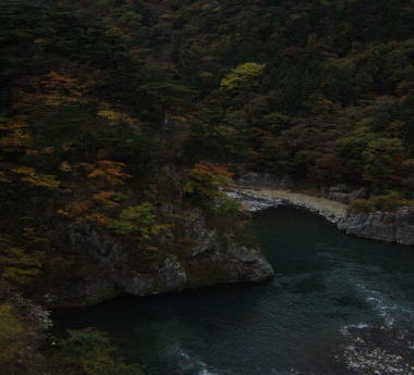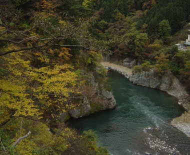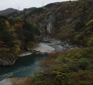 朝食の前にホテルの裏側にある鬼怒川を散歩してみました。素晴らしい渓谷がありました。