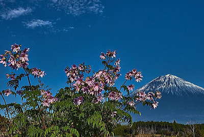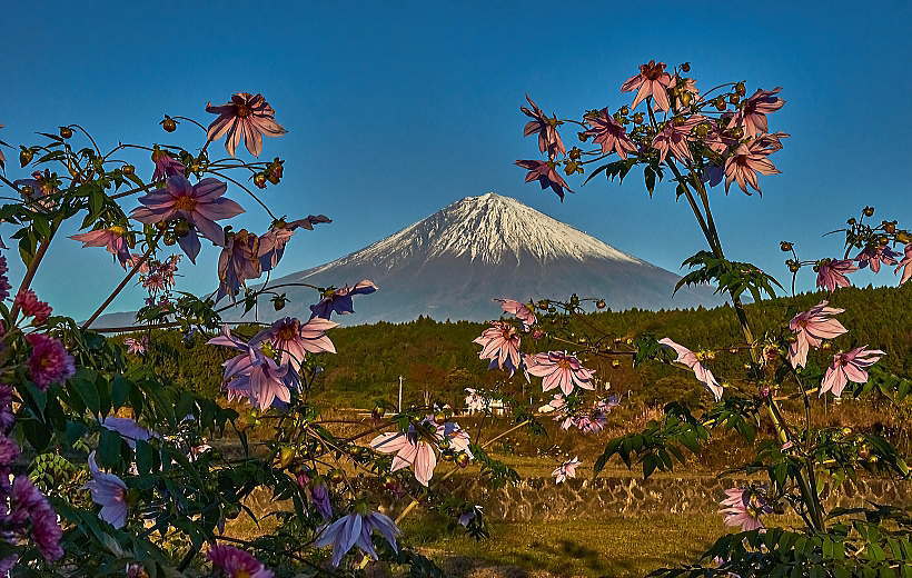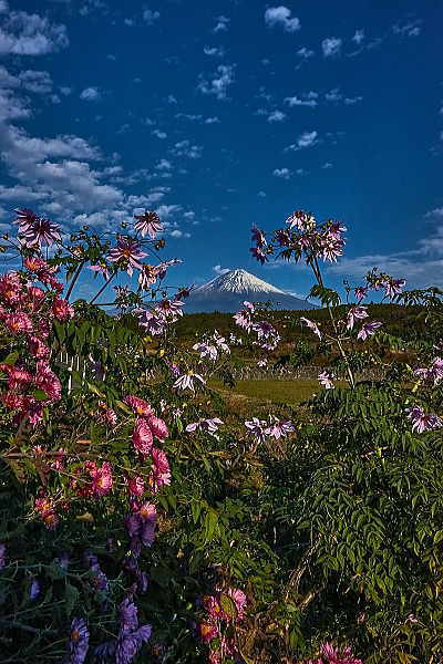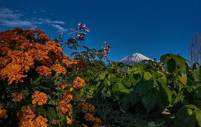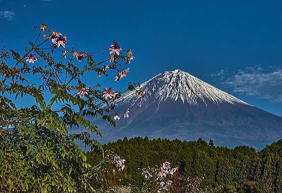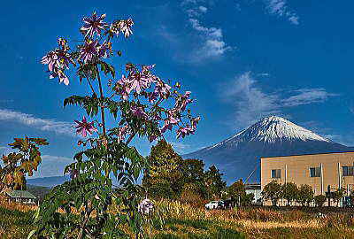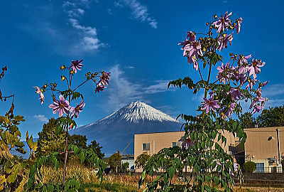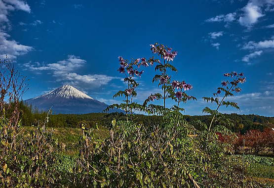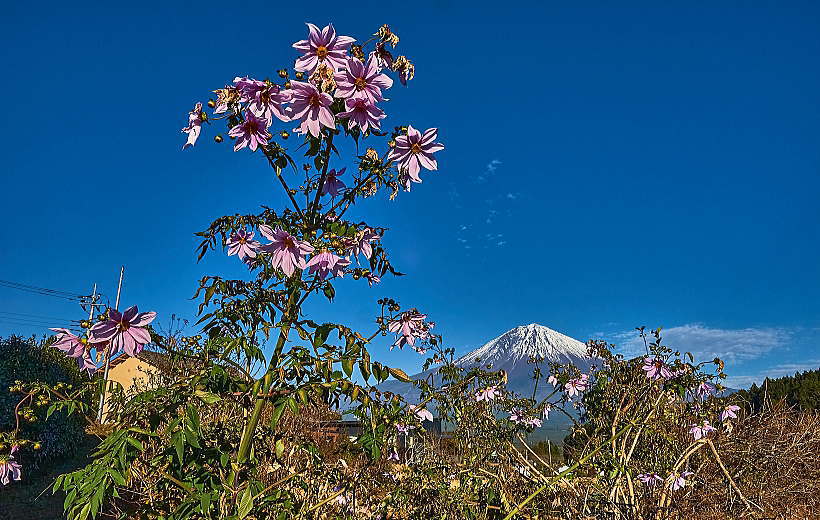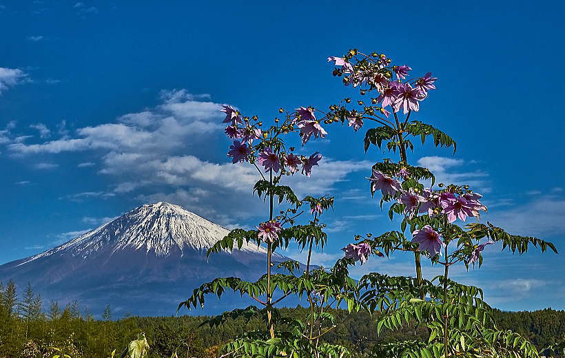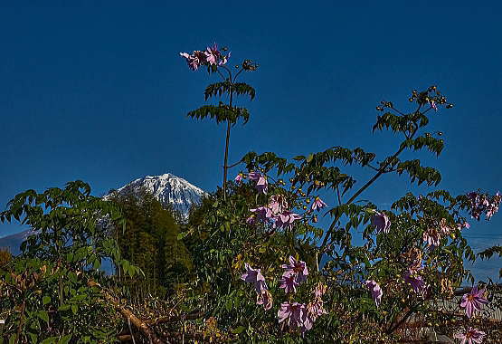 背高のっぽの花と白い富士山は良く似合います。