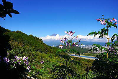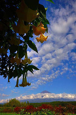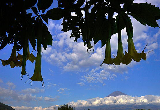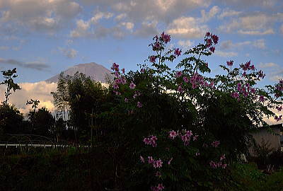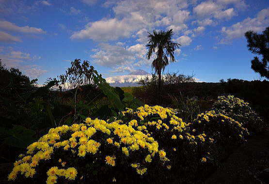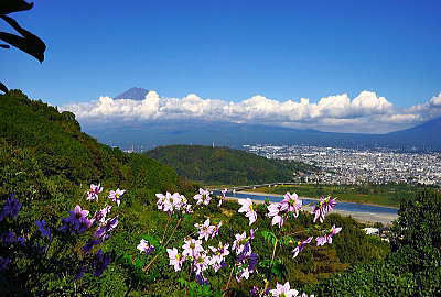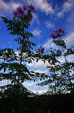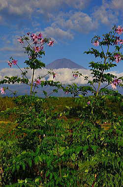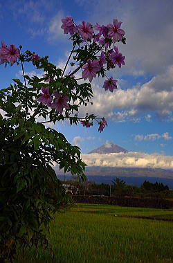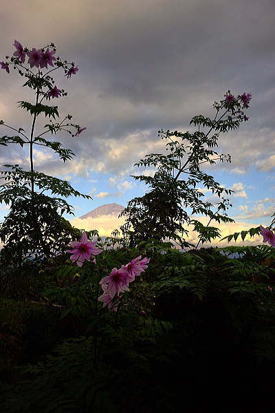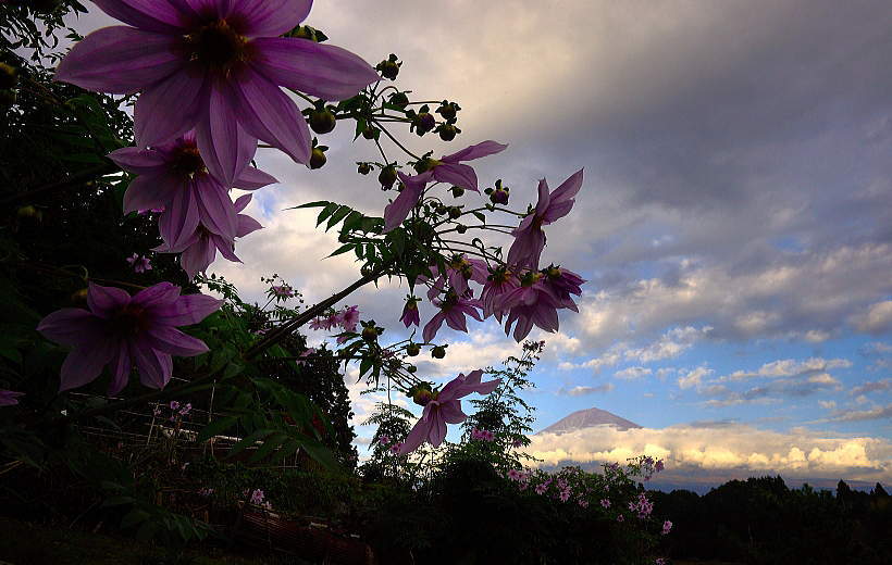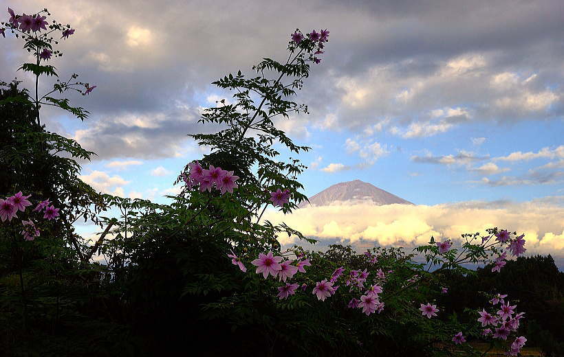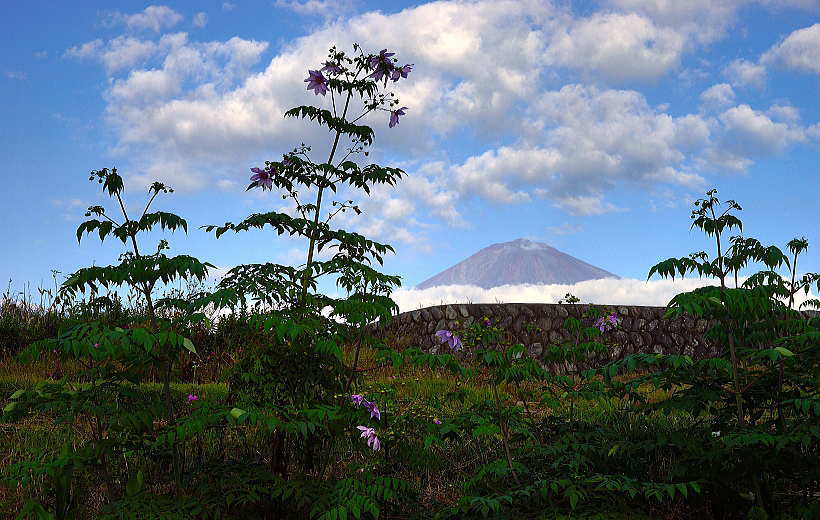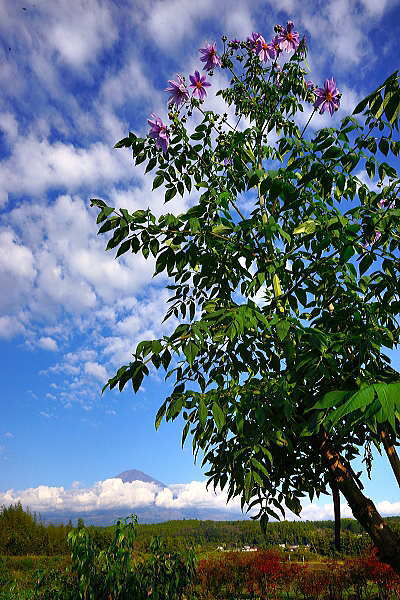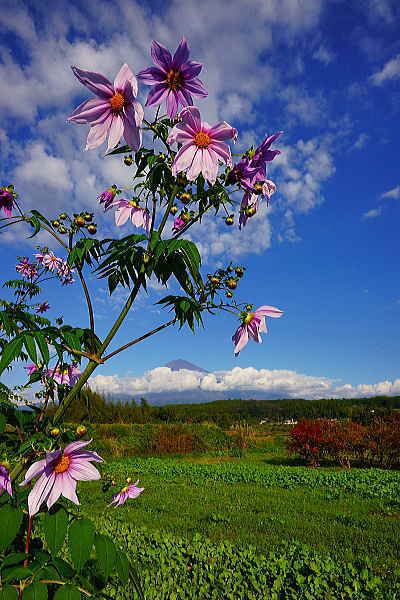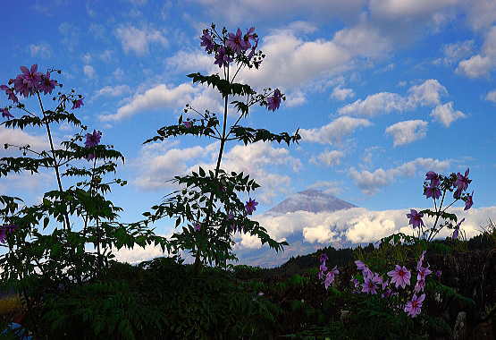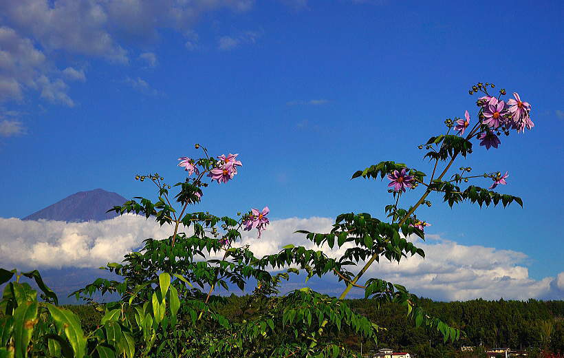 背高のっぽの花と白い富士山は良く似合います。