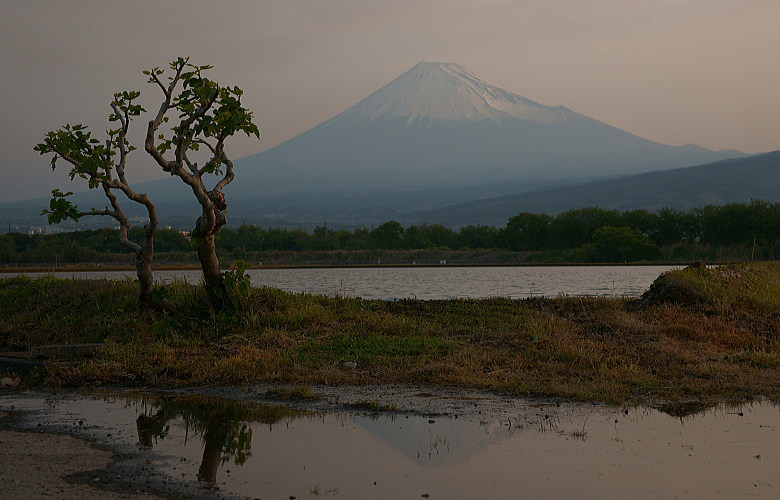 水溜まりの向こうに左利きの私が居るかも?執念の逆さです。