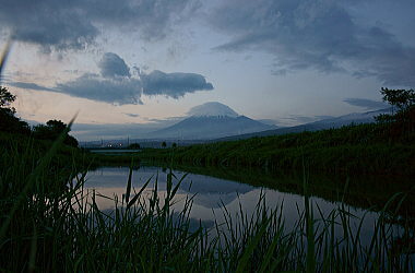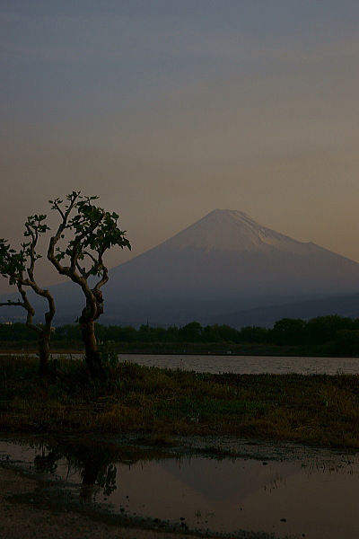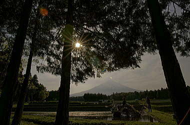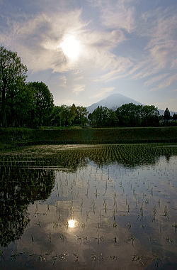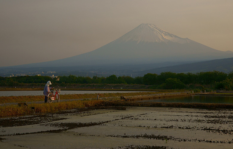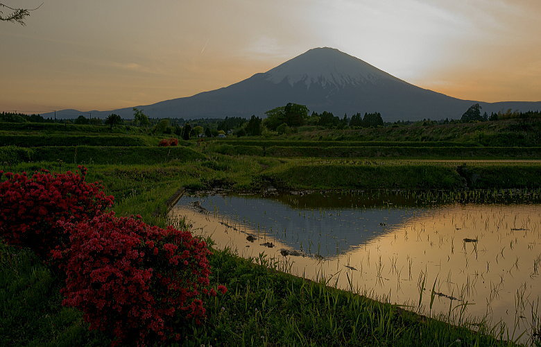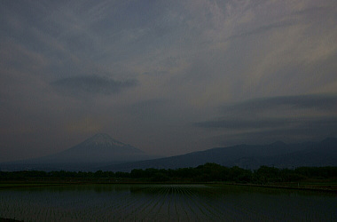 ダイヤモンド富士終了後は再び田んぼに移動です。程良い雲で大焼けを期待したが、この程度でした。