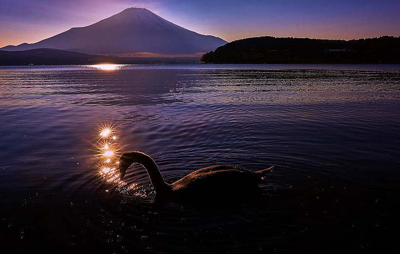 夕暮れ時に富士山の撮影をしていると白鳥が時々遊びに来てくれました。