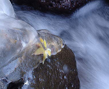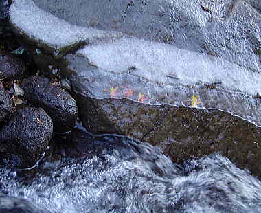 川面に落ちた木の葉、そのまま流れに乗って何処へやら・・・・・