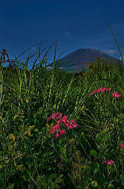 岩肌は赤味を帯びた溶岩です。これに朝陽が当たって真っ赤になるんですよ。