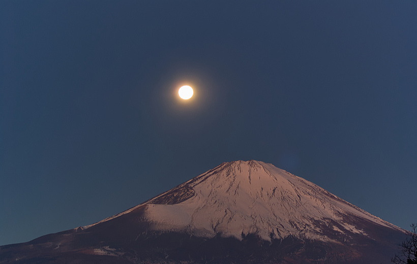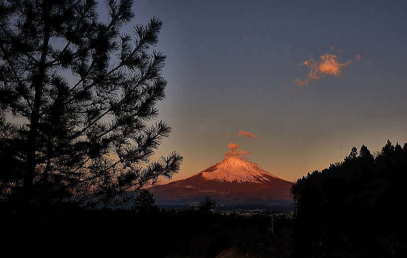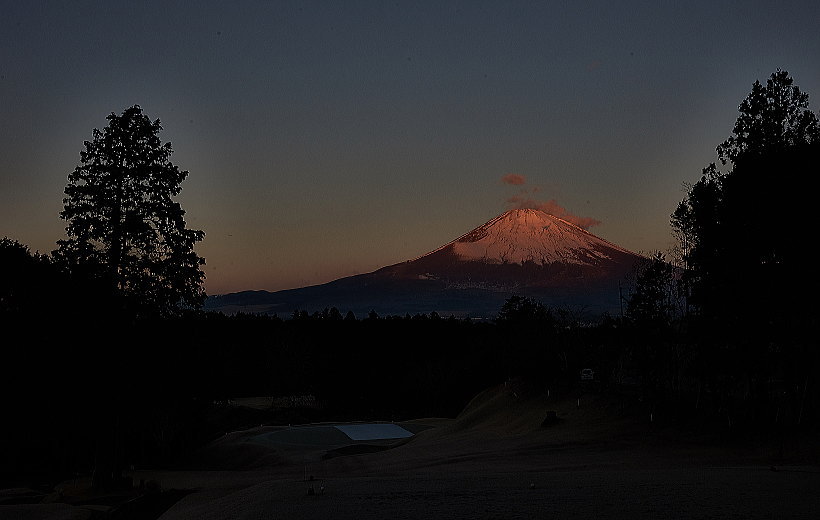 東側からは太陽高度が低く、月が沈んだ頃から紅富士に移行です。