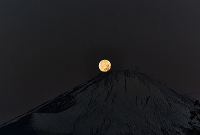 富士山の剣が峰はくっきりとしているので山頂から月までの間で屈折しているようです。