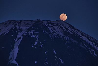 残念ながら2回共、太陽の方向に雲が有って紅富士は無しである。