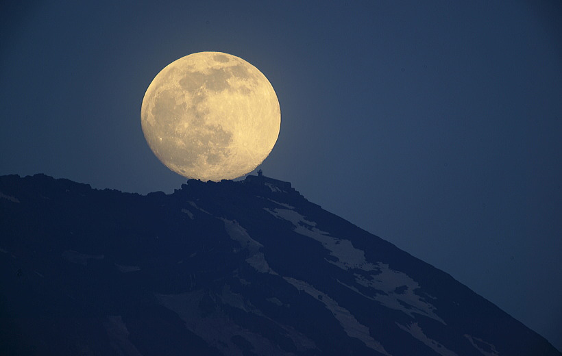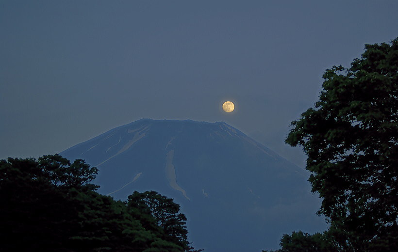 月齢13.9 太陽高度0.0度 本来太陽側に雲が無ければ富士山の山肌は赤く染まるはずだったんです。