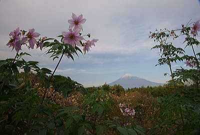 豪快に咲く姿は圧巻でした。天気が悪く富士山が綺麗に見えません。