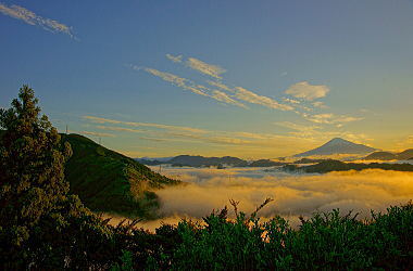 真っ青な空と金色に輝く雲海。こんな条件で育つお茶はさぞかし美味しいことでしょうね。いいナ〜ッ!