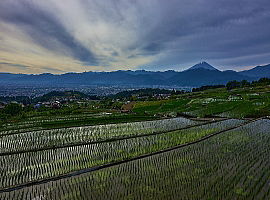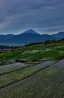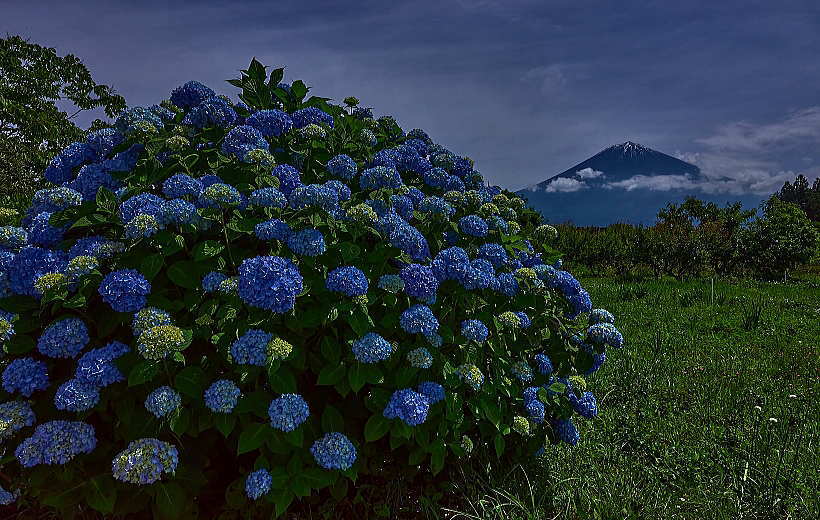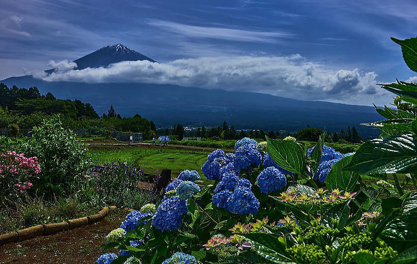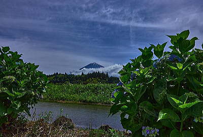 棚田の田植えもしっかり終りました。淵には「アジサイ」が花盛りです。