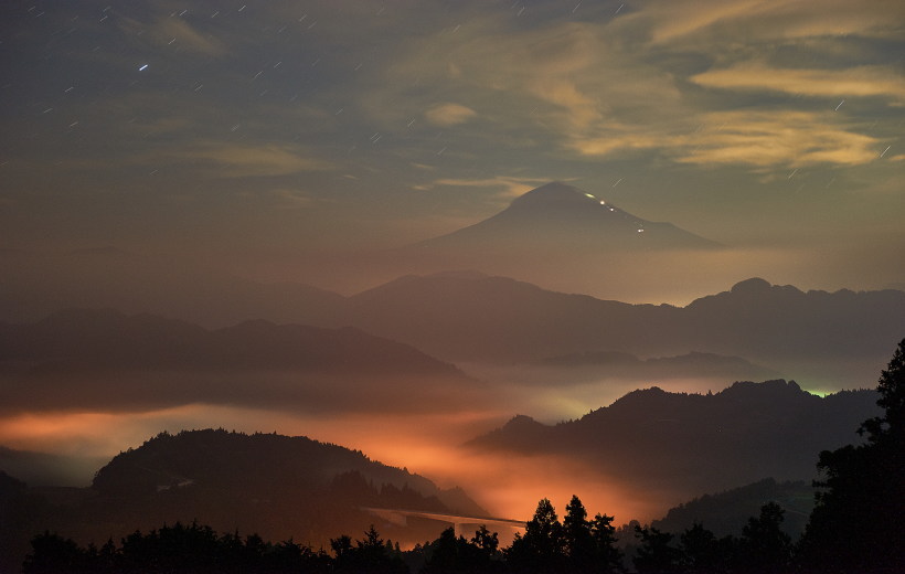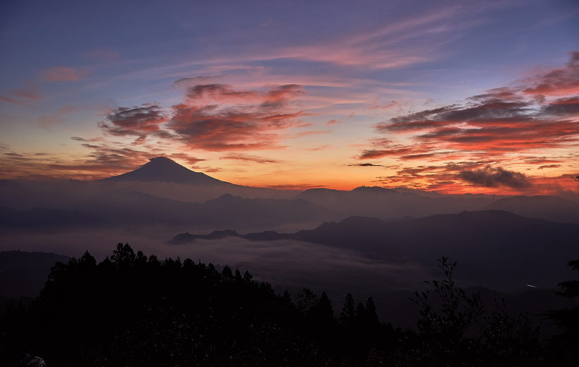 富士山の上空には上手い具合に雲が掛かっていたため、下り坂前の朝焼け期待大です。