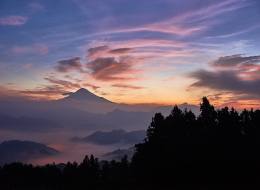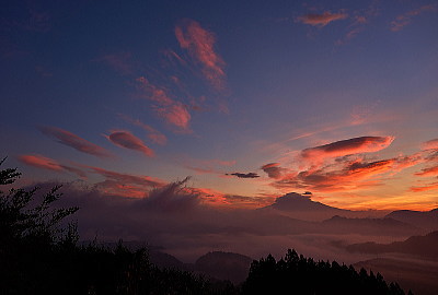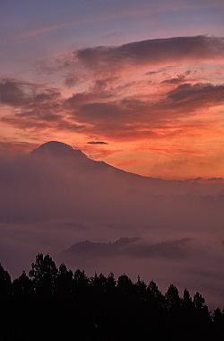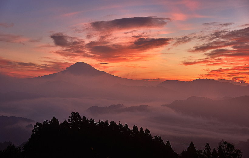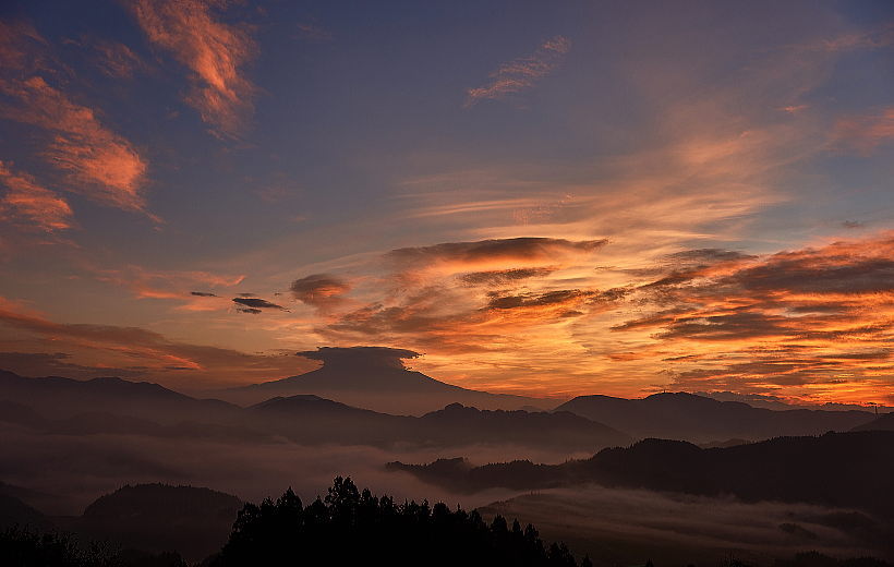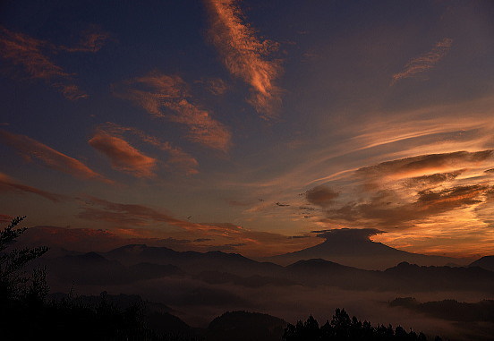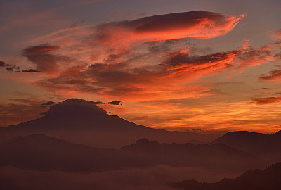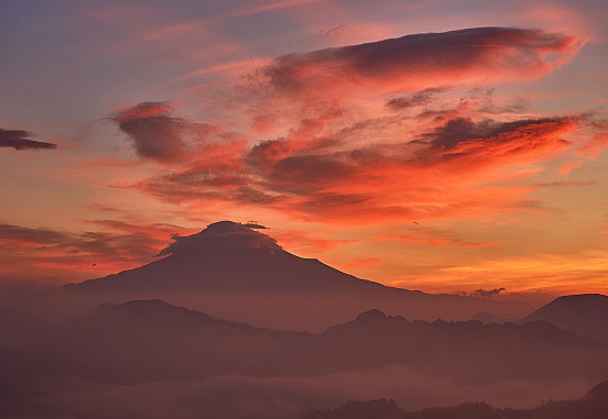 富士山と茜色に焼けた雲・・・プラス雲海>>>>>> これ以上望むとバチが当たりますね。