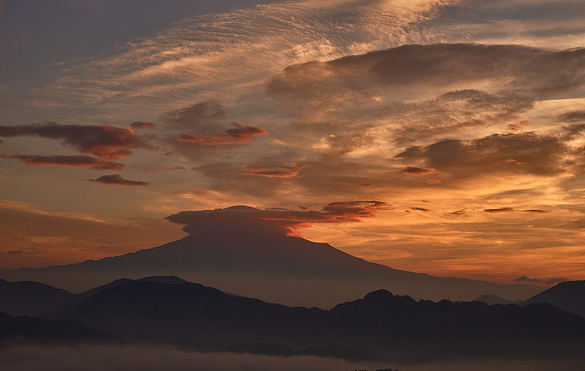 山頂の笠雲みたいなヤツがベロベロベッチャンってやつが変な形になってきましたよ〜ん。