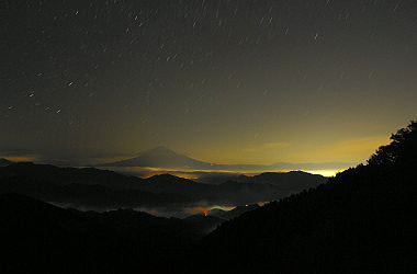 北極星を巻き込んで見ました。中腹の雲は消えていきます。この頃三河のYさんと静岡のKさんが来られました。