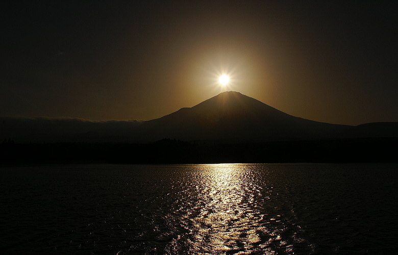 それにしてもダイヤモンド富士は、素晴らしい。残念な逆さ無しの、水面の輝きが余計に拍車を掛けます。